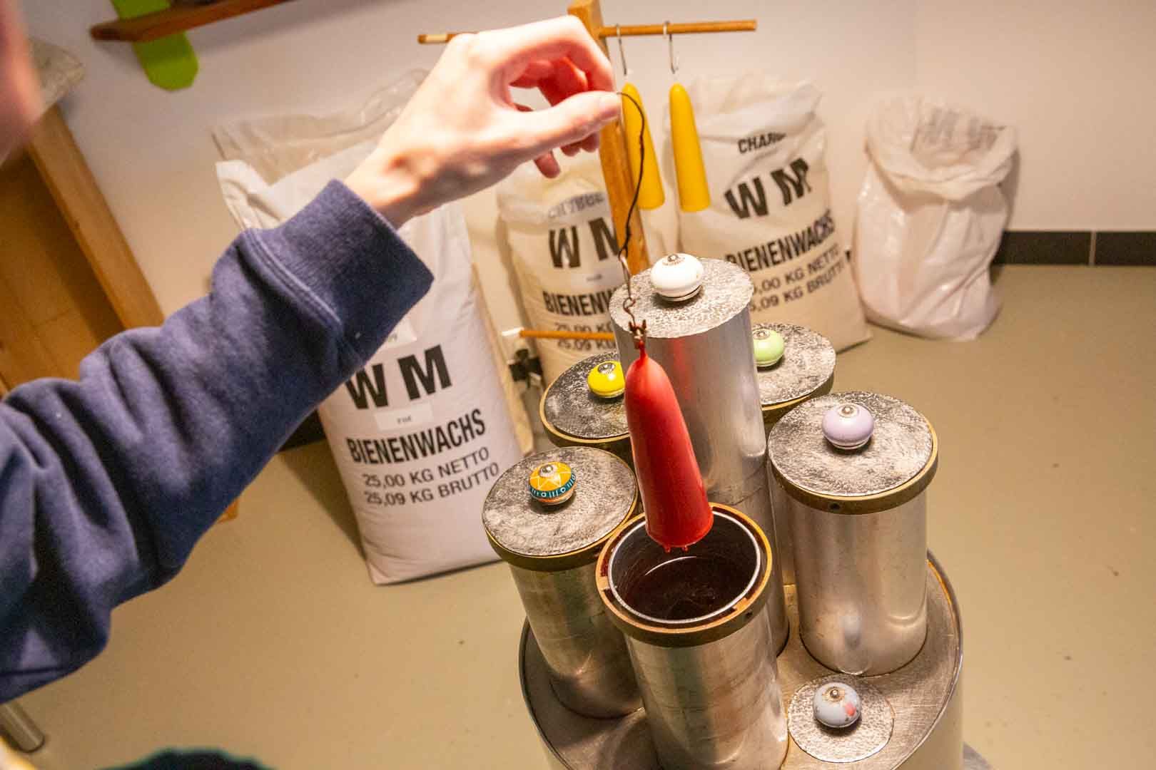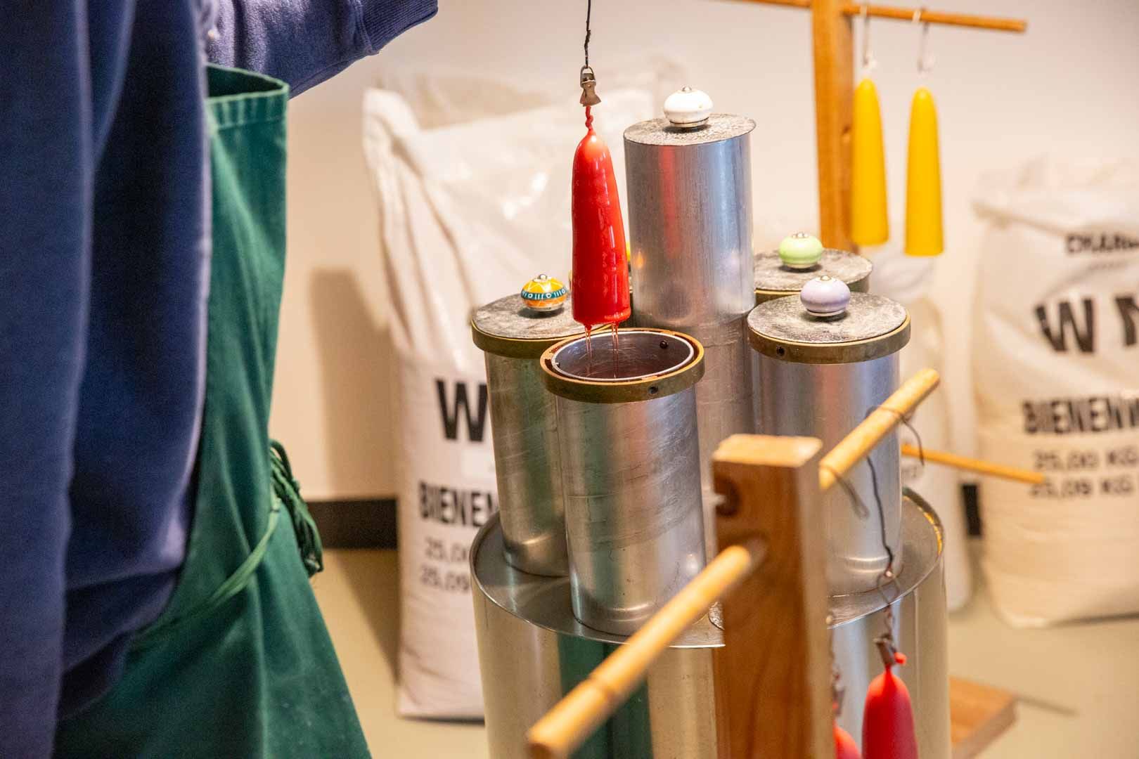 Die Kerzenherstellung mit Bienenwachs als Naturmaterial erfordert ein besonderes Maß an Ruhe, Konzentration und Aufmerksamkeit, da das Wachs empfindlich auf die Stimmungen des Kerzenziehers reagiert. Wir legen großen Wert auf eine entspannte Arbeitsatmosphäre, in der sich unsere Mitarbeiter voll und ganz auf ihre kreative Tätigkeit einlassen können. Zudem schätzen wir die nachhaltige und umweltfreundliche Eigenschaft von Bienenwachs, das nicht nur für ein angenehmes Raumklima sorgt, sondern auch die natürliche Schönheit unserer Kerzen unterstreicht.