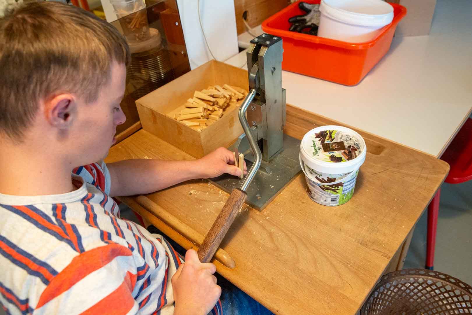 Zwischen Sägen und Schleifen, Kleben und Zusammenbinden, Bohren, Spalten und Einölen entstehen immer wieder neue Produkte, die die Herzen unserer Konsumenten erfreuen. In unserem lebendigen Arbeitsbereich verbinden wir handwerkliches Geschick mit kreativen Ideen und schaffen so einzigartige Holzkunstwerke, die sowohl funktional als auch ästhetisch ansprechend sind.