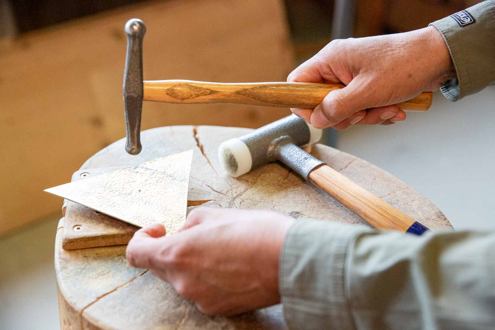 Unser talentiertes Team ist in der täglichen Arbeit stets damit beschäftigt, zu zeichnen, schneiden, hämmern, biegen, plätten, entgraten, polieren, montieren, kleben, veredeln und einzupacken. Dabei entstehen immer wieder einzigartige und liebevoll gestaltete Produkte, die die individuellen Fähigkeiten unserer Mitarbeiterinnen und Mitarbeiter widerspiegeln.