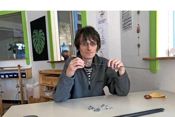 Die Firma MTG Hartmut Thiele erteilt ersten Industrieauftrag für Triskele. Dorne, auf die die Nieten aufgefädelt werden müssen.