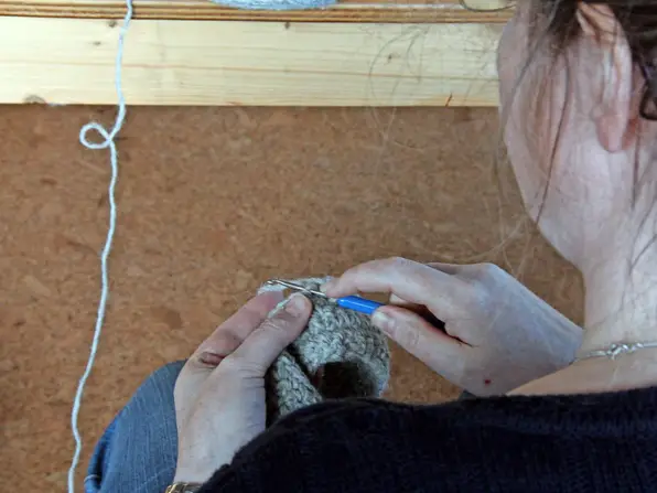 Heidi Alker (Mitte) unterstützt Jutta Gundmann (links) und Verena Nordhausen bei ihren Textilarbeiten.